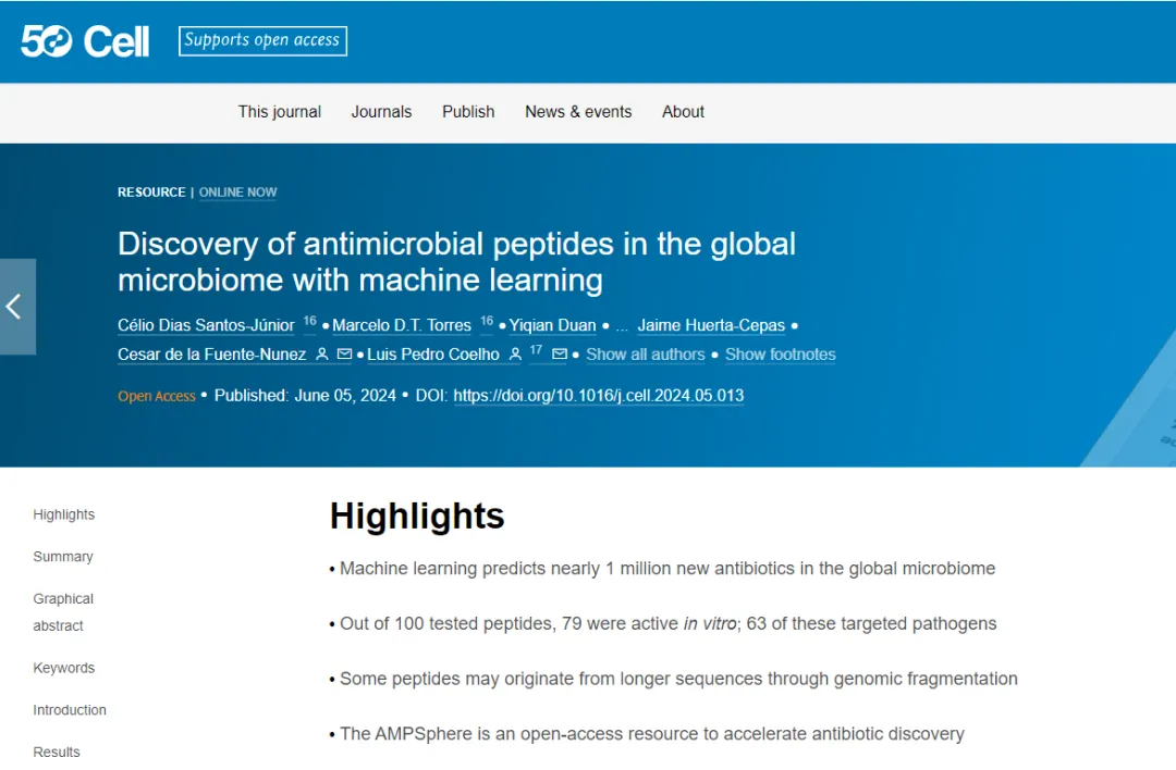 該研究證明了人工智能方法從全球微生物組中識別功能性 AMP 的潛力,研究團隊提出的該AMPSphere數據庫為微生物領域研究提供了寶貴資源,這些研究發現對于理解抗菌肽的起源和作用機制具有重要意義,為未來抗菌藥物的研發邁出了重要一步,為人類健康研究提供了重要貢獻。