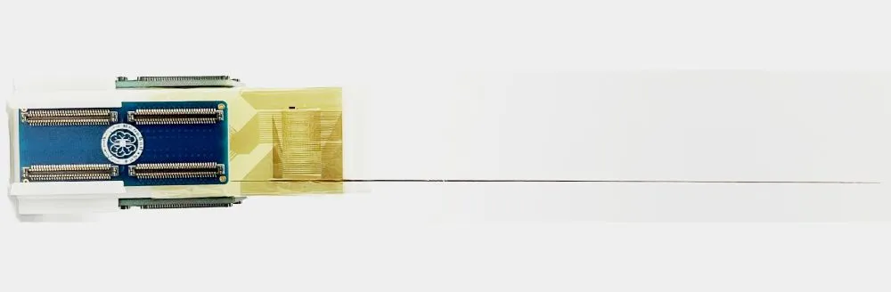 制備高通道神經探針的一個主要瓶頸是神經探針和后端電子器件之間的連接。良好的電學連接可實現神經信號的精準采集與傳輸。為此,研究團隊還研發了高密度柔性冷焊技術,實現了“神經卷軸”探針與后端電子器件的集成化、高密度連接。