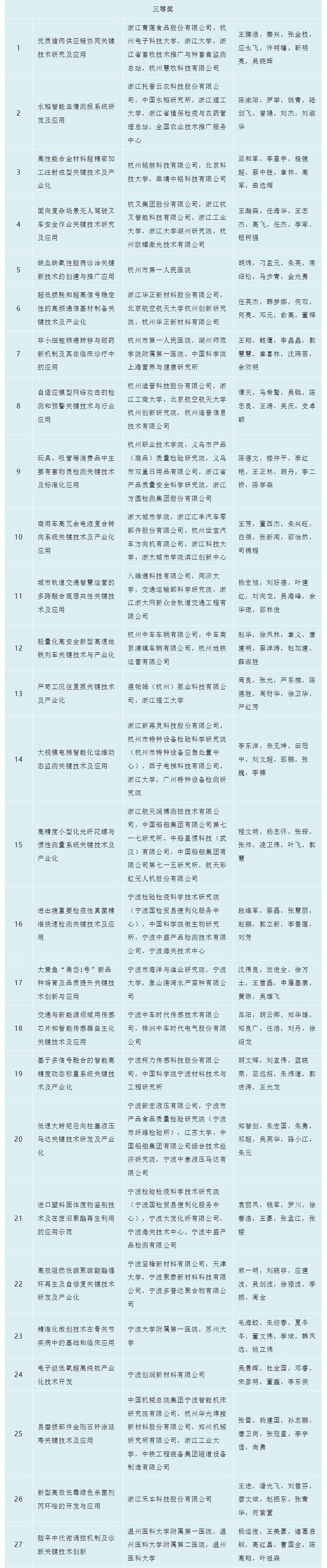 11月22日,加快建設創新浙江因地制宜發展新質生產力動員部署會暨全省科學技術獎勵大會在杭州舉行。大會表彰了2023年度浙江省科學技術獎310項。其中,浙江科技大獎1項,自然科學獎、技術發明獎、科學技術進步獎共299項,國際科學技術合作獎10項。