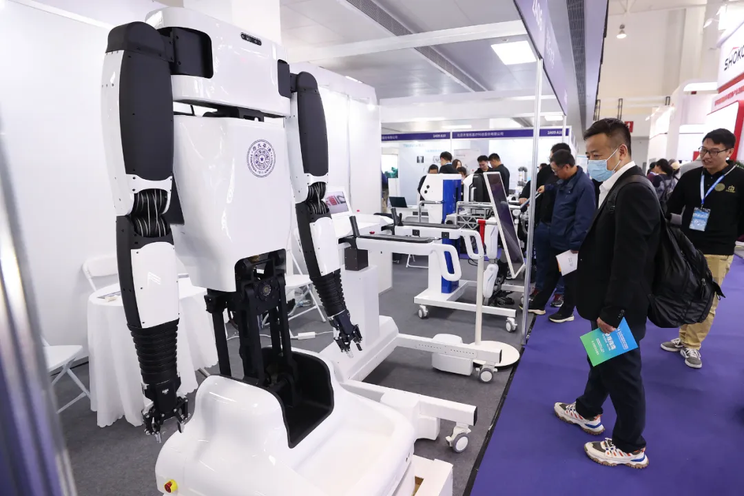 △第十屆北京國際老齡產業博覽會上展示的護理機器人。