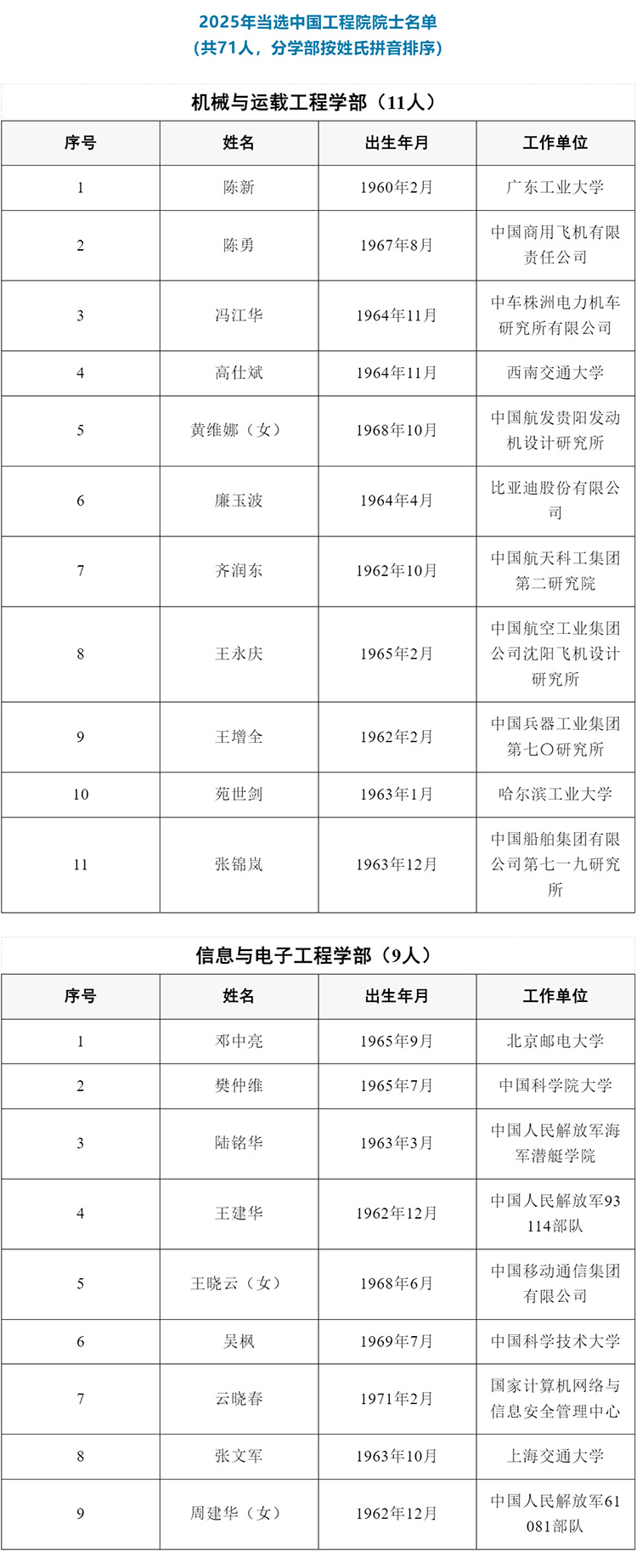 中國工程院2025年院士增選共選舉產生71位中國工程院院士。