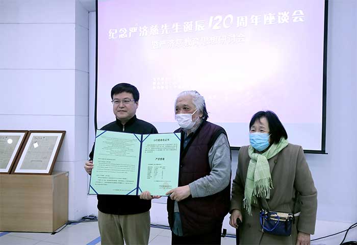 嚴陸光代表家人,將“嚴濟慈星”小行星命名證書捐贈給國科大 楊天鵬/攝